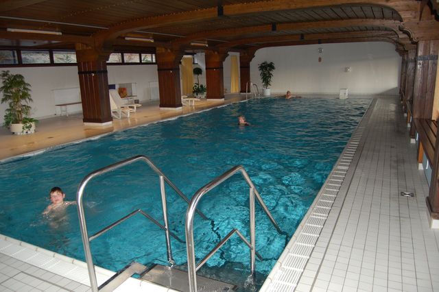 la piscine couverte est chauffée toute l'année l'eau est à à 27° et l'air à 30 °.